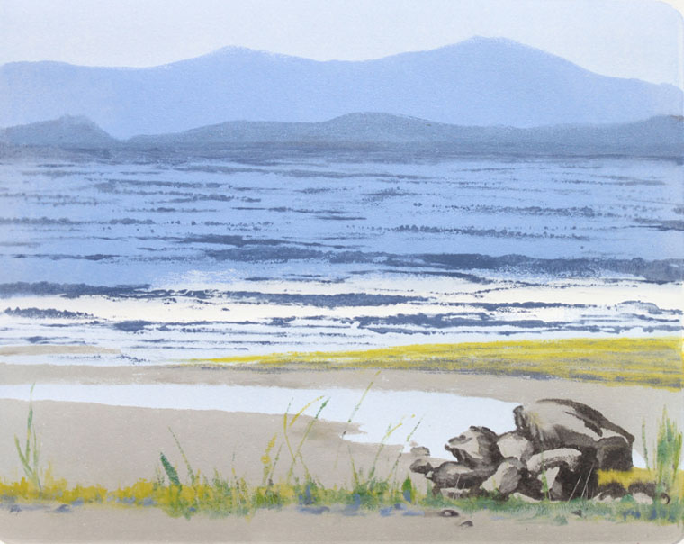 Because of how much she enjoyed doing monotypes and the printmaking process, Donna recently studied printmaking for two years at North Island College in Comox, and was hooked. Her reductive woodcut, “Mossy Shore, Qualicum Beach” won third place in the Arrowsmith Chapter FCA Spring Show in 2023. Most of her work depicts nature and the landscape of our beautiful Island.