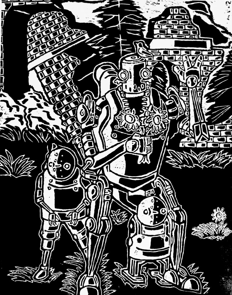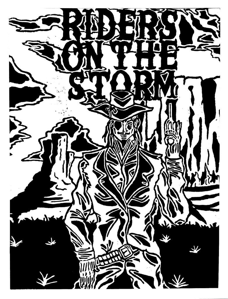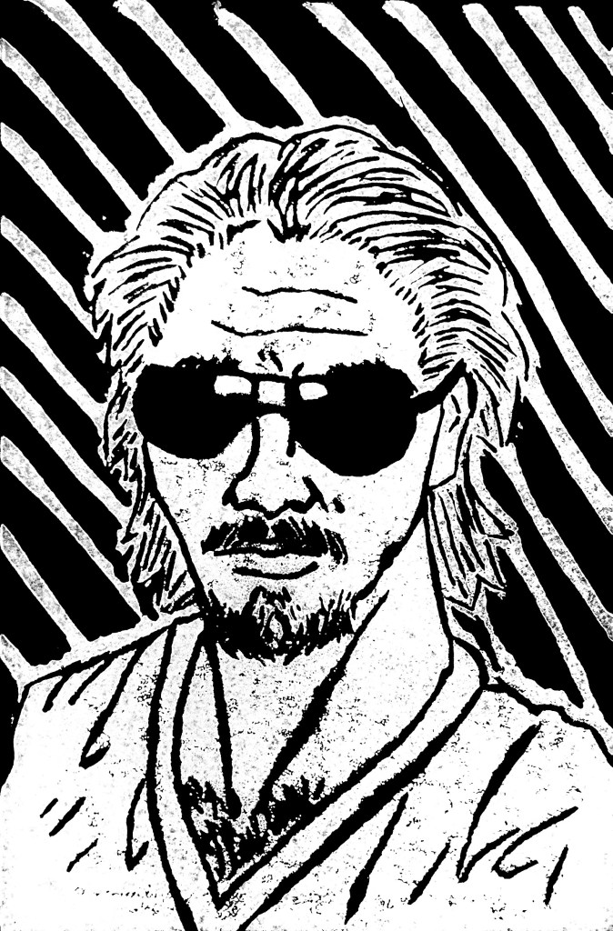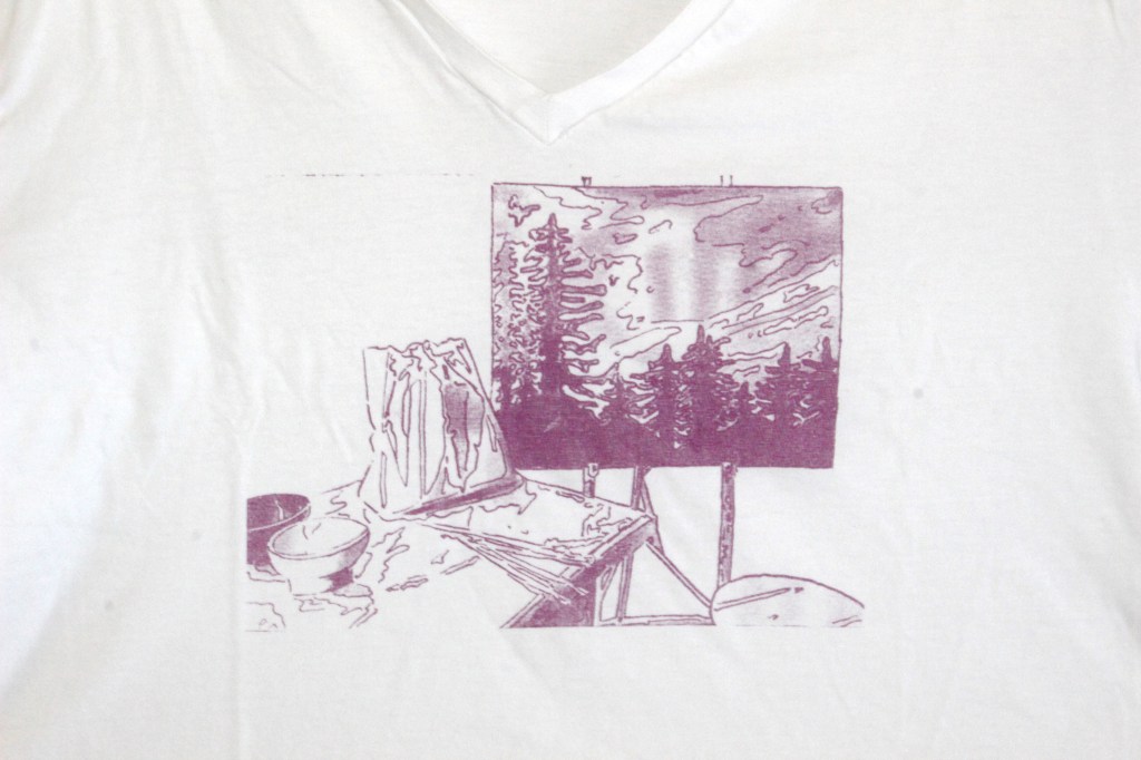 Coming from a milieu surrounded by his father’s service in the military, classic rock, cartoons, and video games, Lewko themes many of his works around his various life experiences, traveling, and hobbies that he enjoyed as he grew up. With most of his prints, Lewko adopts more of a graphic comic book style, inspired by the works of Hirihiko Araki and Jack Kirby. The more subdued and blended colours of his landscapes are instead replaced with pure, rich tints and tones, patterned backdrops, and the occasional ben-day dots on his screen prints. Though they seem to be more Art Brut, they again relate to Lewko’s own hobbies and his desire to seek a common interest with the viewers through his love of classic rock, comics/cartoons, and humour.