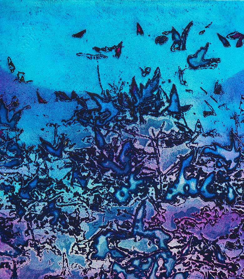 Butterflies, etching, monoprint, 19.5 x 22 cm, simultaneous colour inking ref. K. Reddy, screen printed ink resist on copper plate
