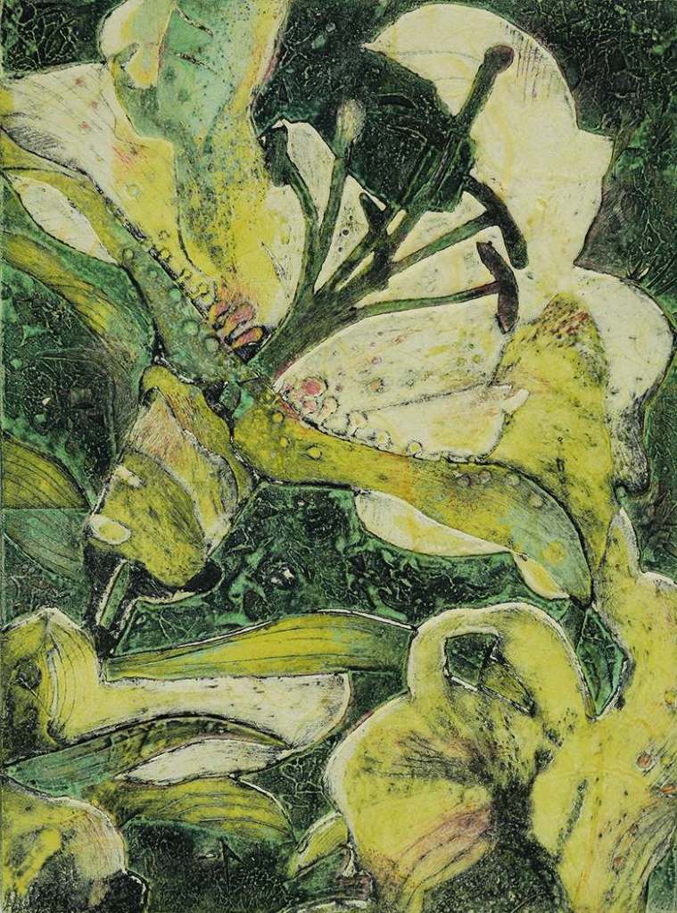 White Lily, collagraph, monoprint, 16.5 x 22.4 cm