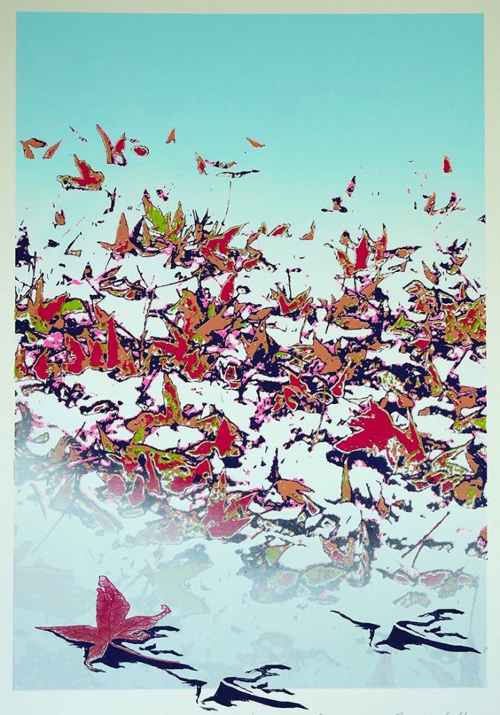 My printmaking is strongly influenced by natural landscapes and my garden. Here I find patterns, forms, shadows, and water reflections that grab my attention. Images created on a camera become abstracted through print making processes: collaging, simultaneous colour inking, posterizing, colour selection edits or reduction to black and white. Resulting prints become distillations of feelings, memories and associations, most often based on my deep connection with nature and concerns for the future.